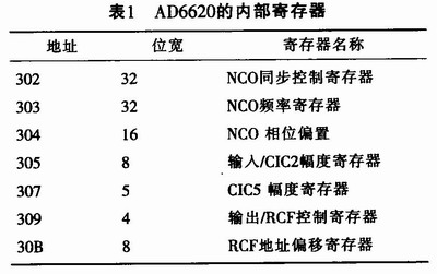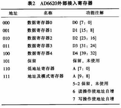 AD6620內(nèi)部各個模塊的配置寄存器并不是等位長的。具體各模塊內(nèi)部配置寄存器的位長見表l所列,而內(nèi)部寄存器的訪問則必須通過外部接口寄存器來指定地址,并由高位到低位按字節(jié)寫入。