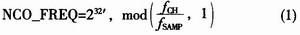 為了提高NCO的雜散性能,AD6620提供有相位抖動與幅度抖動選項(xiàng)。另外,NCO的設(shè)置包括設(shè)置NCO頻率、NCO相位補(bǔ)償和NCO的特性以及相應(yīng)寄存器的配置。NCO的頻率可由下式計(jì)算: