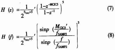 其中,SCIC2為幅度比例因子,可用來衰減CIC2濾波器的增益,MCIC2是抽取率。