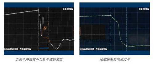 對(duì)于短路保護(hù)的設(shè)計(jì)非常重要。短路維持時(shí)間的測(cè)量如圖2所示,峰值漏極電流和持續(xù)時(shí)間由柵極脈沖電壓的幅值和寬度來控制。在測(cè)量的過程中要控制所加的電源電壓,保證在短路關(guān)斷過程中,VDS尖峰電壓不要超過器件最大