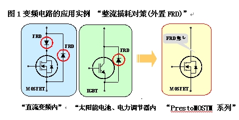 等的再生電流的高速路徑,需要2個(gè)FRD。這樣一來(lái),添加FRD必然會(huì)使元器件數(shù)量增加,而且MOSFET導(dǎo)通時(shí)的漏極電流(Id)路徑中也因添加FRD而導(dǎo)致?lián)p耗增加。PrestoMOS通過(guò)實(shí)現(xiàn)內(nèi)部二極管