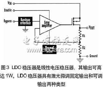 現(xiàn)有的LDO穩(wěn)壓器可提供可調(diào)或固定輸出電壓。固定輸出型LDO的輸出電壓變化為±2%~±6%,通常提供1~5V范圍的輸出。
