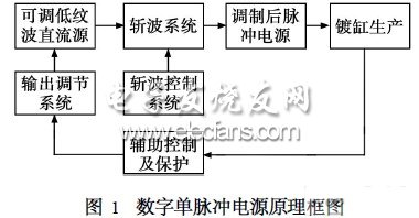 所謂數(shù)字脈沖電源,就是采用微處理器等數(shù)字電路對脈沖電源中的直流斬波進行控制,并實現(xiàn)數(shù)字顯示與數(shù)字調(diào)節(jié)的一種脈沖電源。它是現(xiàn)在最先進的電鍍電源,也是電鍍電源的發(fā)展方向。