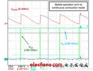 出現(xiàn)一些人耳可聽到的噪聲。能夠使用一顆簡單的電阻來改善這功能。其次,在啟動序列期間,PFC段也可能呈現(xiàn)出過大的過沖??梢栽诜答伕袦y網(wǎng)絡中放置一顆電容來限制或抑制這過應力。即便是在電源設計的極晚階段,這兩種調整方法都易于實施。
