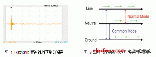 34 共模噪聲又稱為非對稱噪聲或線路對地的噪聲,在使用交流電源的電氣設(shè)備的輸入端(輸電線和中線)都存在這種噪聲,兩者對地的相位保持同相。共模噪聲的來源于高頻的模電壓和電流,電場耦合和磁場耦合。共模電流由