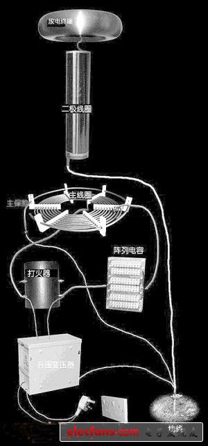23960 特斯拉線圈一種分布參數高頻串聯(lián)諧振變壓器,可以獲得上百萬伏的高頻電壓。