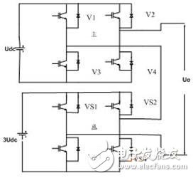 通信或者其他電路得到?! D1:多功能逆變電源原理 在主電路的設(shè)計上借鑒了多重逆變器結(jié)構(gòu),采用了二重單相全橋逆變器連接。原理圖如圖2.兩個逆變器直流側(cè)電壓不相同,主逆變器的直流側(cè)電壓為Udc,從
