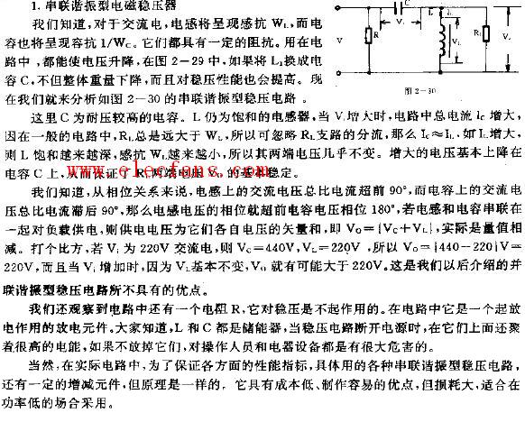 并聯(lián)諧振型電磁穩(wěn)壓器:如下圖,在LX兩端并上一個(gè)電容C,即組成了圖2-31這種并聯(lián)諧振型電磁穩(wěn)壓器。