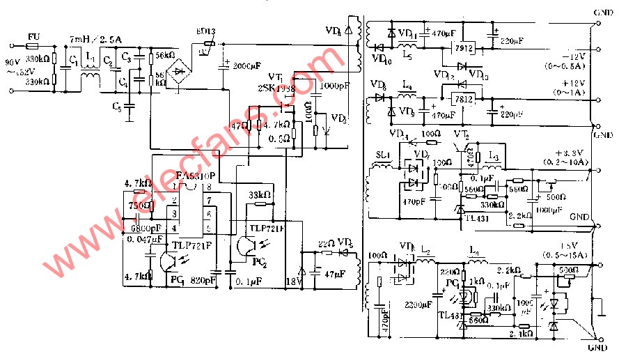 工作狀態(tài),因?yàn)楸究刂?b class="flag-6" style="color: red">電路的誤差放大器采用的是TL431,其原因是由于隔離反饋電路采用的是比較普遍的光隔離器。副邊的誤差放大器通常采用的是TL431,它的內(nèi)部有一個(gè)具有溫度補(bǔ)償?shù)?b class="flag-6" style="color: red">電壓參考源和一個(gè)放大器