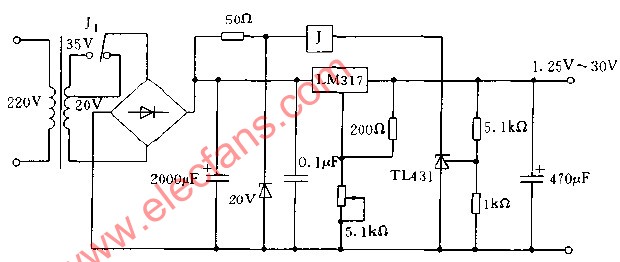 LM317自適應可調穩(wěn)壓電源電路圖