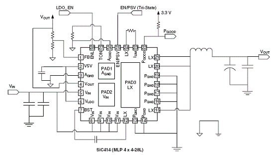2417 SiC414 datasheet,pdf(6 A, 28 V Integrated Buck Regulator with 5 V LDO)