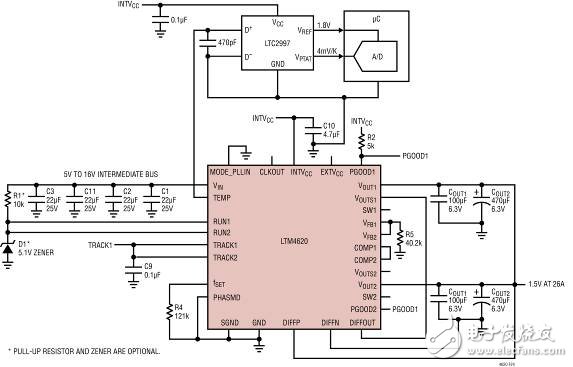 DN411 - 簡單且緊湊的四輸出負載點 DC/DC uModule 系統(tǒng)
