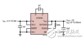 圖 2:LTC3245 原理圖,從 2.7V 至 38V 輸入提供固定 5V 輸出
