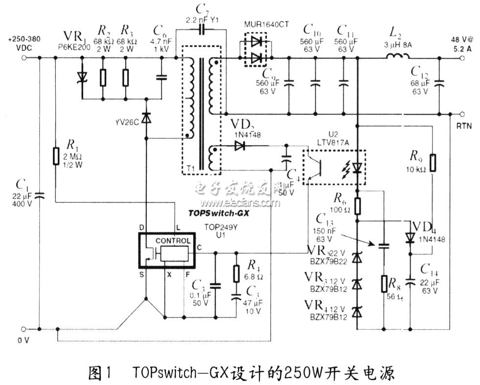 l 用TOPswitch—GX設計的250W開關電源