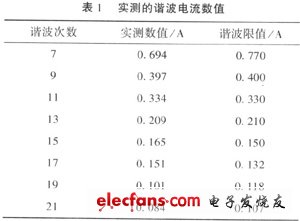 表l所列為測得的7~21次諧波電流的數值,其中11、15、17次諧波電流都超標。
