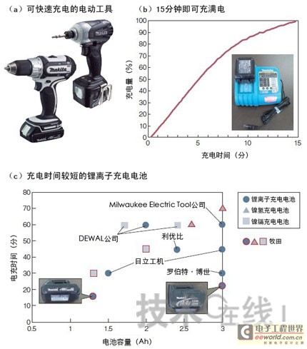 非接觸充電技術雖大有興起之勢,但其應用的前期階段是快速充電鋰離子電池的采用。實際上,已有產品通過采用快速充電鋰離子電池提高了易用性,從而擴大了銷售額的事例。這就是電動工具。