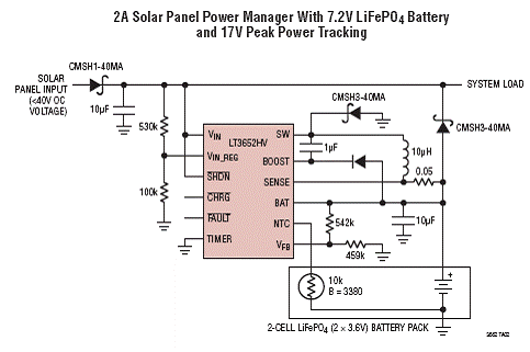 1620 采用凌力爾特設(shè)計(jì)的LT3652太陽能電池充電器可以設(shè)計(jì)出非常簡單高效的太陽能電池充電器電路,使用很少的外部電子元件。