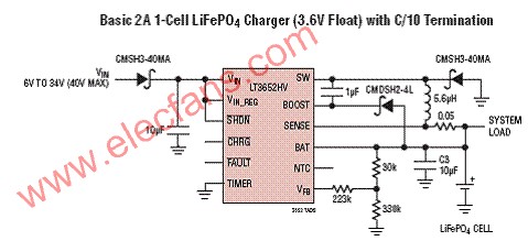 LT3652HV 是一款完整的單片式、降壓型電池充電器,可在 4.95V 至 34V 的輸入電壓范圍內(nèi)運(yùn)作。LT3652HV 提供了一種恒定電流 / 恒定電壓充電特性,最大充電電流可在外部設(shè)置至高