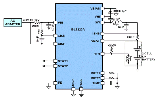 使用Intersil半導(dǎo)體設(shè)計的ISL9220IC可以設(shè)計出非常簡單,高效率的高性價比電池充電器,適用于基于1節(jié)鋰離子和鋰聚合物的便攜式應(yīng)用。
