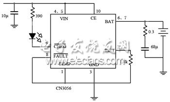 電路顯示單節(jié)500mA微型,低壓差鋰離子電池充電器。通過程序電阻(RPROG),PROG引腳與地之間的組合以及VCC和SENSE引腳之間的檢測(cè)電阻(RSENSE)對(duì)充電電流進(jìn)行編程