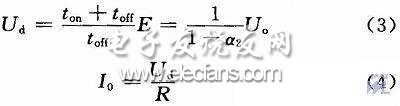 放電時,相當(dāng)于Boost升壓斬波變換器,T1,T3截止,T2,T4工作,與VD1,VD3構(gòu)成升壓斬波電路,能量從Uo傳到Ud,二者的關(guān)系為: