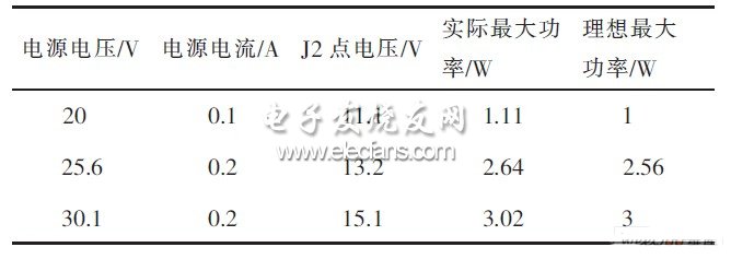 對斬波電路后的J2點進(jìn)行測試的,將J2點處接1個30 W/30 Ω的功率電阻作為負(fù)載,測試出表1中的各項數(shù)據(jù)。