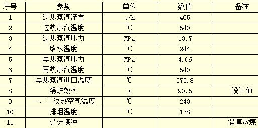 鍋爐主要參數(shù)(見表1):