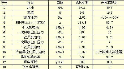 l???????? 采用四項(xiàng)有效的燃燒措施即:低床壓、低氧量、高爐膛壓力、優(yōu)化煤粒粒徑級(jí)配措施,提高鍋爐燃燒效率的同時(shí)也降低了飛灰可燃物。