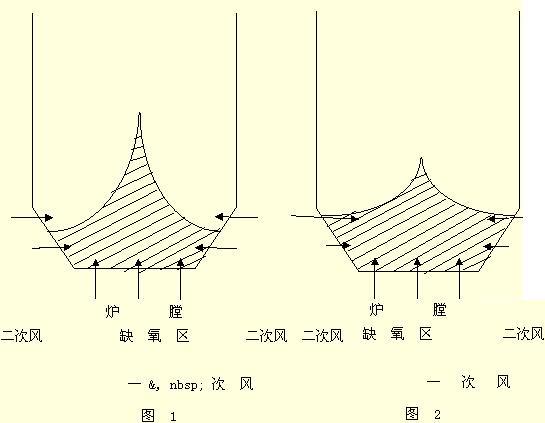 l?????? 爐內(nèi)床料粒子濃度大,二次風(fēng)的穿透能力弱,稀相區(qū)煤粒與氧的混合效果差,燃燒效率低。