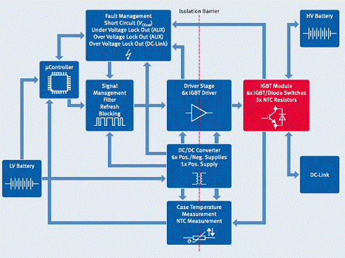 隔離器,以確保安全性、電平轉(zhuǎn)換、電壓傳輸,并且消除可能的地環(huán)路噪聲。圖3:主逆變器中的隔離。 EV/HEV中的開關(guān)電源 開關(guān)模式功率變換器是EV/HEV系統(tǒng)的重要組成部分,其廣泛用于主要和輔助逆變器