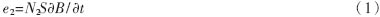 測量動態(tài)回線的方法很多,經(jīng)常使用的有示波器法、鐵磁儀法和采樣法等[3]。這里介紹示波器法。此方法就是利用一般陰極射線示波器直接顯示交流回線,由于簡單可靠,在工業(yè)測量中有著廣泛的應(yīng)用。這些方法的測量原理都是相同的,具體如圖1所示[4]。圖1中,N1和N2分別為樣品的磁化線圈和測量線圈的匝數(shù);R1為串入樣品初級線圈回路的小電阻;e2為樣品測量線圈上的感應(yīng)電壓;ur1為小電阻R1上因磁化電流通過而產(chǎn)生的電壓。感應(yīng)電壓e2與磁感應(yīng)強(qiáng)度B的關(guān)系為: