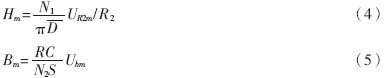 本文中激勵信號為正弦波,若磁心線圈是線性元件,則根據(jù)歐姆定律可知,通過磁心線圈的激勵電流也是正弦的。但是,實際的磁心線圈是非線性元件,所以磁化電流和電壓必為畸變的波形。較多的初次級線圈匝數(shù)也會使回線變形,原因是線圈多了,匝間分布的電容加大,通過分布電容的位移電流加大,當(dāng)然會使回線變形。另外,H路信號的電壓是從取樣電阻上獲得的,為了保證B為正弦波,取樣電阻阻值要低,且有很大的功率,并要求它是無感的。實際的電阻不是理想的,其分布電容和電感使H信號隨著頻率的升高而失真。本文采用的是10W的線繞電阻,若采用金屬膜電阻,可減小誤差。