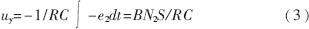 積分器是用運算放大器實現(xiàn)的,理想化的集成運放應(yīng)具有無限大的差模輸入阻抗、趨于零的輸出阻抗、無限大的共模抑制比、無限大的頻帶寬度以及趨于零的失調(diào)和漂移[10]。實際上集成運放不可能具有上述理想特性。另外,積分電阻和電容也不是純電阻和電容,有一定的分布參數(shù),一般表達(dá)式為: