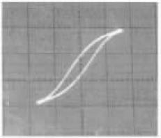 改進(jìn)后的電路測量的磁滯回線如圖3所示。該圖形是由數(shù)碼相機(jī)在示波器上拍攝下來的。示波器上顯示的僅僅是測量電流和電壓的相位關(guān)系,如要得到B-H的關(guān)系曲線和具體的性能參數(shù),還要進(jìn)行定標(biāo)轉(zhuǎn)換。結(jié)合實際測量電路,由公式(2)、(3)得出最大磁場強(qiáng)度Hm和最大磁感應(yīng)強(qiáng)度Bm的計算公式[7]為: