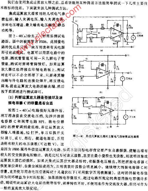 集成運算放大器是一種線性集成電路,和其它半導(dǎo)體器件一樣,它是用一些性能指標(biāo)來衡量其質(zhì)量的優(yōu)劣。為了正確使用集成運放,就必須了解它的主要參數(shù)指標(biāo)。集成運放組件的各項指標(biāo)通常是由專用儀器進(jìn)行測試的,這里介紹的是一種簡易測試方法。