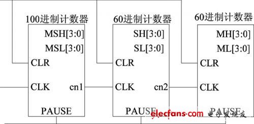 本節(jié)通過(guò)Verilog HDL語(yǔ)言編寫(xiě)一個(gè)具有“百分秒、秒、分”計(jì)時(shí)功能的數(shù)字跑表,可以實(shí)現(xiàn)一個(gè)小時(shí)以內(nèi)精確至百分之一秒的計(jì)時(shí)。