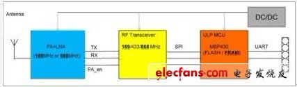 2. 有外部功率放大器和可選的 LNA(如 TI 的 CC1190 @ 868MHz 或?qū)S?RF 前端 @169MHz)