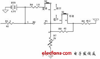 根據(jù)鋰電池保護IC的工作原理設(shè)計的測試電路如圖2所示,圖3詳細說明了圖2中模塊B的電路。模塊A在測試過流保護時為CS引腳提供電壓,模擬圖1中的CS引腳所探測到的電壓。調(diào)整模塊中的可變電位器可為CS引腳提供可變電源,控制其中的跳變開關(guān)可為CS提供突變電壓。模塊B為電源,模擬為IC提供工作電壓。調(diào)整電路中的可變電位器R7可為整個電路提供一個可變電壓,在測試過充電保護電壓和過放電保護電壓時使用??刂颇K中的開關(guān)S1的閉合為測試電路提供一個跳變電源,在測試IC的過充、過放和過流延遲時使用。跳線端口P1、P2在測試IC工作電流時使用,在測試其他參數(shù)時將開關(guān)S2導(dǎo)通即可。測試IC工作電流時,將電流表接在P1、P2上,將開關(guān)S2斷開。模塊C是用2個MOSFET做成的微電流源,在測試OD、OC輸出高、低電平時向該引腳吸、灌電流,只要MOSFET選擇恰當(dāng),可以滿足測試需要。模塊D是2片MOSFET集成芯片,相當(dāng)于圖1中的M1、M2,其中的兩個端口在測試MOSFET漏電流時使用,在測試其他參數(shù)時要將這兩個端口短接。模塊E是一個IC插座,該插座用于放置待測IC,最多可以放置4片IC(測試時只能放一片IC),測試完以后可以將IC取出,不留任何痕跡,不影響IC的銷售和再次測試。