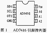AD7416采用8腳表面貼SO和8腳小型SOIC封裝形式,圖1所示為AD7416的引腳排列圖,各引腳功能如表1所列。