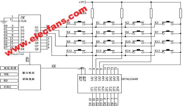 4×4矩陣式非編碼鍵盤電路