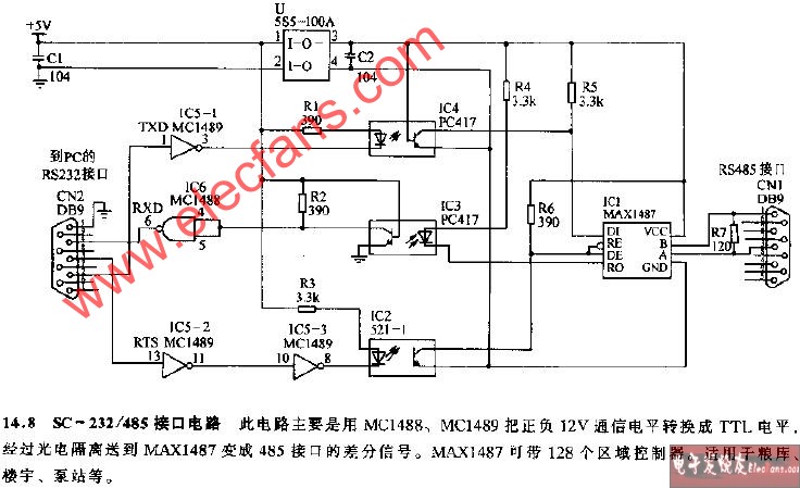 759 本圖為R232轉(zhuǎn)RS485的通訊電路轉(zhuǎn)換圖