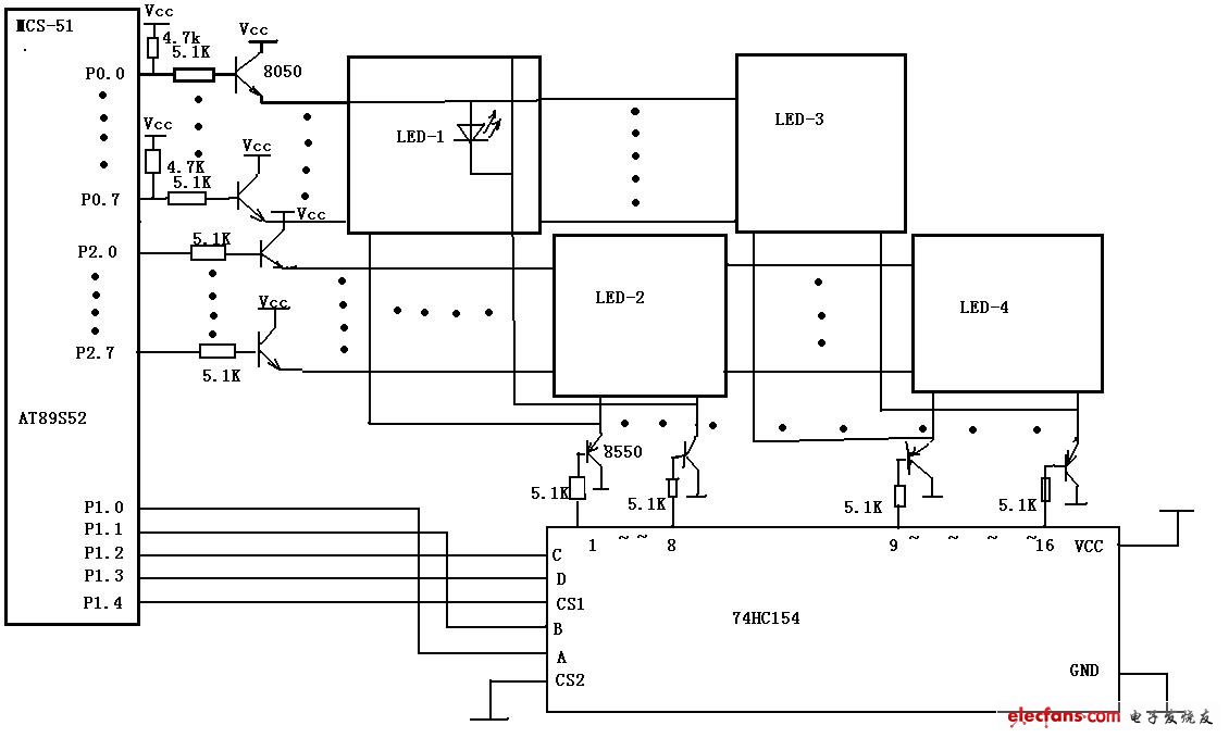 LED流動(dòng)電子鐘電路主控電路圖118:28時(shí)間顯示效果圖是非常便宜的89C2051單片機(jī),c5、R6組成它的上電復(fù)位電路,Yl、C6、C7組成它的時(shí)鐘電路。Pl口作數(shù)據(jù)總線(xiàn)用,LED點(diǎn)陣的列數(shù)據(jù)(1~8)由IC