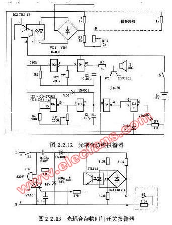 光耦合雜物間門開關(guān)報(bào)警器電路圖
