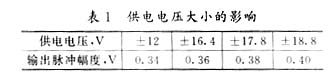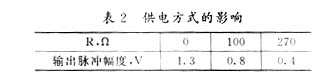 供電電壓大小對帶電纜能力的影響如表1所示,可見供電電壓大小對輸出脈沖幅度沒有明顯的影響。