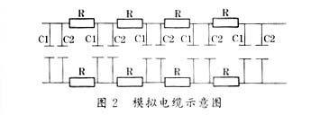 為了適應(yīng)測井電纜的“最壞情況”,就要改進(jìn)驅(qū)動(dòng)電路,使配接電纜以后的信號(hào)仍能滿足地面測井儀的檢測。為了便于在實(shí)驗(yàn)室條件下研究驅(qū)動(dòng)電路的傳輸性能,參考最差電纜的參數(shù),設(shè)計(jì)制作模擬電纜,是一條有效的途徑。經(jīng)過反復(fù)比對,圖2所示的模擬電纜完全能夠模擬最差的電纜,能夠用于檢驗(yàn)驅(qū)動(dòng)電路的驅(qū)動(dòng)能力。