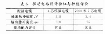 由表5可見,隨著電容值的增加,帶電纜以后輸出脈沖幅度明顯增大,但也存在一定的副作用,即脈沖寬度有所增加,大量試驗(yàn)表明,當(dāng)電容值控制在0.22uF~2.2uF之間時(shí),既能使輸出脈沖幅度明顯增大,又能將脈沖寬度控制在可接受的范圍之內(nèi)。