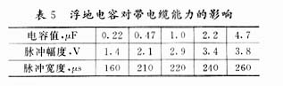 對于44us方波,輸出浮地電容C對帶電纜能力的影響如表5所示。