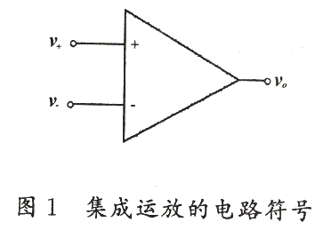 大多數(shù)集成運(yùn)放都是雙端輸入和單端輸出的高增益放大器。它的引出端子中,除了兩個(gè)輸入端和一個(gè)輸出端外,還有兩個(gè)電源引入端、調(diào)零端,還有相位補(bǔ)償端和其它一些端子。在分析應(yīng)用電路時(shí),常用帶兩個(gè)輸入端和一個(gè)輸出端的三角符號(hào)來代表運(yùn)算放大器,如圖1所示。