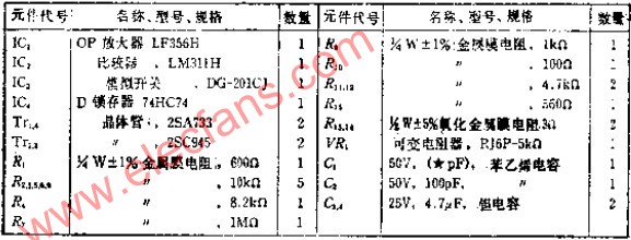 成問(wèn)題是輸入高頻時(shí),比較器、鎖存器、模擬開(kāi)關(guān)的工作時(shí)間被相加,打開(kāi)模擬開(kāi)關(guān)比比SIN0度滯后一定的相位,為此,讓輸入放大器A1產(chǎn)生相應(yīng)的滯后,便可得到改善,電容器C1就是為此目的而加的,其容量按需要的滯后量確定采用50PF的微調(diào)電容器,調(diào)整范圍要包括OP放大器的滯后在內(nèi)。