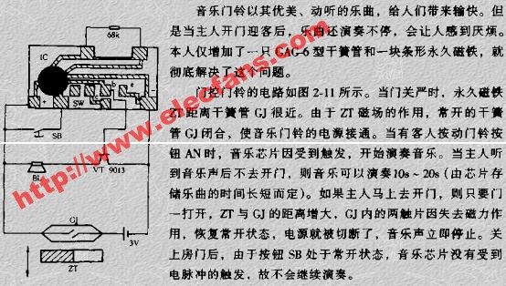 電池的雙音門(mén)鈴 隨著電話機(jī)的普及率越來(lái)越高,擁有住宅電話的家庭也越來(lái)越多,但大多數(shù)住宅電話使用率很低,利用電話入戶饋線提供的48V(60V)直流饋電作電子門(mén)鈴的工作能源是經(jīng)濟(jì)實(shí)用的?,F(xiàn)介紹一款不用